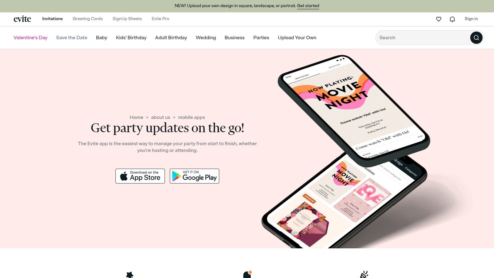 - Pricing: Free "Flyer" invites for up to 50 recipients; premium "Card" designs are priced using "Coins," an in-app currency.