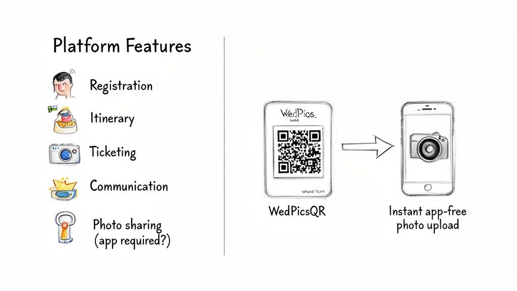 This is where unbundling certain features becomes a seriously smart cost-saving move. Most of the big, all-in-one platforms throw in a photo-sharing module, but let's be honest—it's often a bloated, clunky feature that drives up your subscription cost while giving your guests a headache. By handling this crucial task separately, you can get a far better result for a fraction of the price.