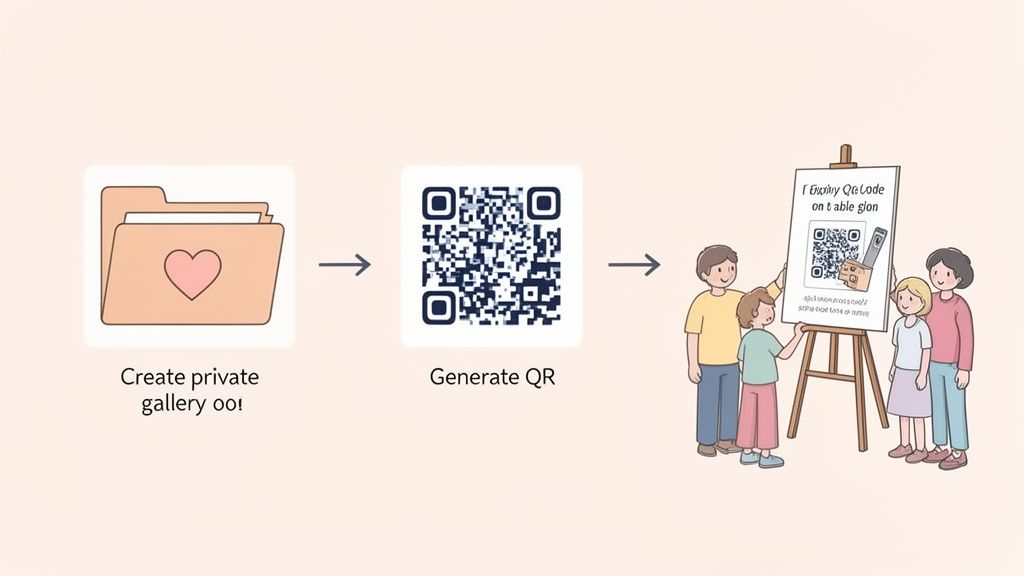 Hereâs the thing: the goal is always the same. You want to seamlessly consolidate memories from every guest's phone into one clean, private gallery. Whether it's the toasts at a 50th birthday bash, the handshakes at a corporate summit, or the hugs at a family reunion, a simple QR code is the key that unlocks all those moments with instant uploads.