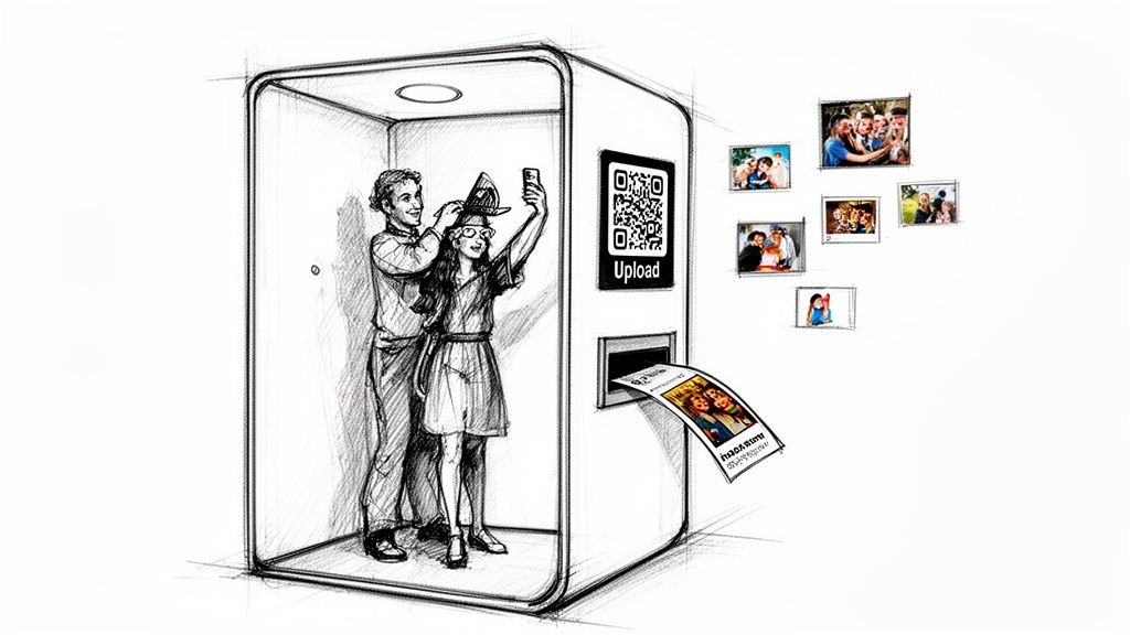 This approach offers the best of both worlds: a tangible, heartfelt keepsake and an entertaining activity for your guests. To ensure every memory is preserved, you can easily create a digital backup. Simply place a QR code sign next to the station, allowing guests to upload the digital versions of their photos directly to a shared gallery like WedPicsQR. This protects against lost prints and seamlessly consolidates all moments in one secure, app-free location.