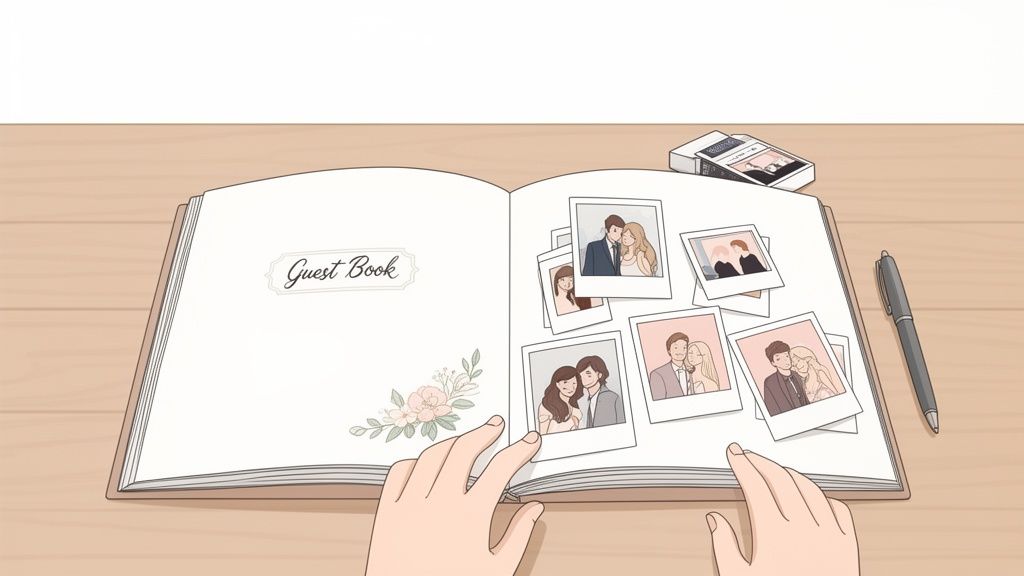- Consider Your Guests' Experience: The most successful guest book is one that is intuitive and enjoyable for everyone. An option requiring no app downloads, like a QR code system, removes friction and encourages participation from all age groups. This emphasis on ease of use ensures more guests contribute. Similarly, a well-placed Polaroid station with clear instructions will draw people in, while a complex or hidden setup might be overlooked.