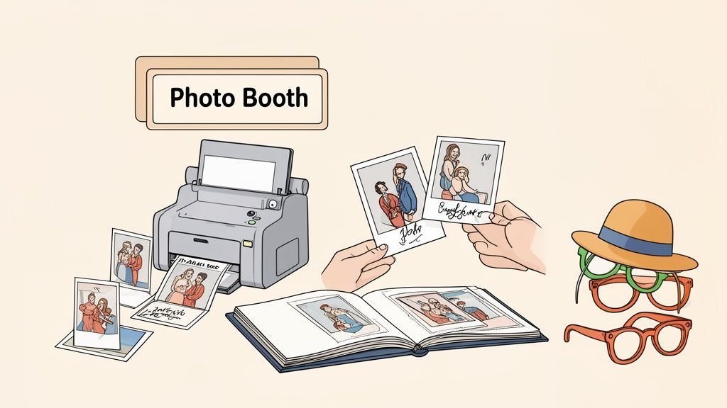 - Create a Designated Station: Work with your venue to place the booth in a high-traffic, visible area that won't disrupt the main flow of events. Set up a small adjacent table with the guest book, pens, and any adhesive materials needed.