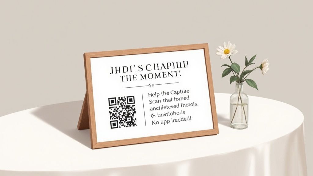 The secret to getting a flood of candid photos is making it ridiculously easy and keeping it visible all night. A huge selling point you'll want to highlight is the instant photo uploads with no app requirement. That’s the magic—it removes all the friction. Guests just scan, snap, and share.