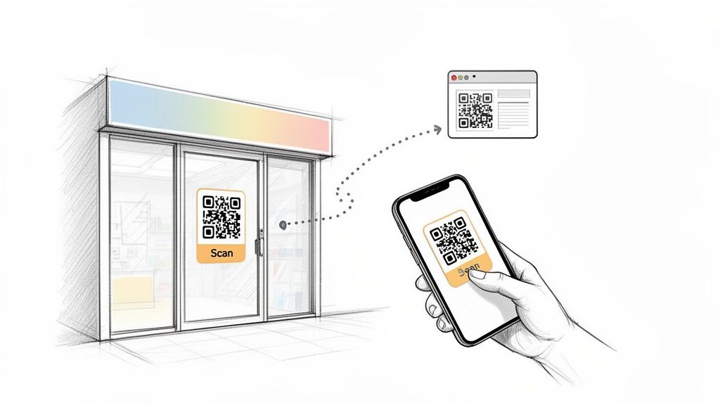 For any small business, a QR code is more than just a funky-looking square. Think of it as a low-cost, high-impact marketing tool that connects your real-world customers directly to your digital space. It's the simplest way to bridge the gap between a printed flyer or a storefront sign and your website, menu, or a special offer, leveling the playing field without a huge budget.