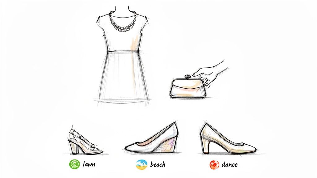 Finding the right shoes is a game-changer. For a deeper dive, this expert guide to choosing wedding shoes has some fantastic insights. At the end of the day, the best choice is a mix of what’s right for the venue and what feels good on your feet, ensuring you look and feel amazing from the first toast to the last dance.