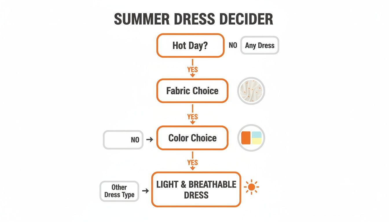 This simple decision tree is a great place to start, guiding you through the first big choices—weather, fabric, and color—before you even get to the cut of the dress.